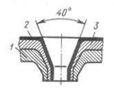 Рис. 2. Соединение лепестка с листовым корпусом холодной сваркой: 1 —корпус; 2 —плакирующий слой; 3 —лепесток