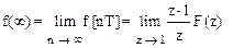 5. Предельные значения. Если дискретные значения функции в установившемся режиме существуют, то они могут быть найдены путем следующего предельного перехода: