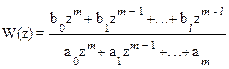 По аналогии с определением передаточной функции непрерывных систем выражение W(z) называется дискретной передаточной функцией импульсной системы. Данная запись отличается от передаточной функции для непрерывных систем тем, что переменная z в полиномах имеет отрицательные степени. Для того, чтобы была полная аналогия с передаточными функциями непрерывных систем, степень переменной z делают положительной путем домножения числителя и знаменателя выражения (1.46) на zm. Тогда получим формулу, которая полностью аналогична записи для непрерывной функции