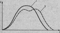 образца брать технику спортсменов I разряда, то этот коэффициент повысится до 0,38. Другой пример (рис. 78). Бег спринтеров высокой квалификации характеризуется тем, что вертикальная составляющая реакции опоры имеет одну вершину, у спринтеров II—III разрядов — две вершины, у новичков — три и даже четыре вершины. В данном случае эффективность техники оценивается по форме кривой: чем больше вершин, тем ниже эффективность. Специфика.определения сравнительной эффективности техники в игровых видах спорта и единоборствах заключается в том, что эталонные значения достаточно вариативны. Например, в разных играх эффективность техники одного из сильнейших нападающих советского футбола О. Блохина колеблется от 0,55 до 0,80 (экспертная оценка его действий в этих матчах была отличной). Если проанализировать данные конкретного спортсмена, полученные только в одной игр^ то может оказаться, что в силу случайных обстоятельств эффективность его техники будет высокой (например, 0,77), а в других играх — существенно меньше. Поэтому сравнивать нужно результаты, полученные в серии игр, сопоставляя средние арифметические и стандартные отклонения. Нельзя в единоборствах и в игровых видах спорта сопоставлять технику спортсменов, выступающих в соревнованиях разного квалификационного уровня, в разных лигах и т. п. Например, коэффициенты эффективности техники футболистов, играющих в высшей лиге и во второй, могут быть одинаковыми, но из этого вовсе не следует, что игровые приемы они выполняют одинаково хорошо. Когда команды второй лиги играют между собой, эффективность игровых действий может быть достаточно большой. Если же такая команда встретится с командой высшей лиги, то показатели эффективности техники ее игры резко снизятся.