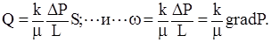 Скорость фильтрации прямо пропорциональна проницаемости и градиенту давления и обратно пропорциональна вязкости жидкости. Закон Дарси можно записать еще в 3-ей форме выражения