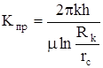 Прокомментируем некоторые результаты. Дебит скважины пропорционален депрессии DР (разнице давлений в пласте и на забое работающей скважины) и одинаков через любую цилиндрическую поверхность, т.е. не зависит от r. Отношение объемного дебита скважины к DР называется коэффициентом продуктивности