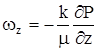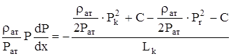 где: Qaт – объемный дебит, приведенный к атмосферному давлению на устье скважины и пластовой температуре; Р – пластовое давление; Qm – массовый дeбит. Подставляя выражение w в уравнение фильтрации, получим: