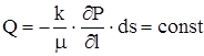 Таким образом, для установившейся фильтрации движения упругого флюида в однородной среде по закону Дарси справедливо уравнение Лапласа, но уже не относительно давления (Р) или потенциала (Ф), а относительно функции Лейбензона Â. Введение функции Лейбензона в уравнения позволяет установить полную аналогию между установившейся фильтрацией несжимаемого флюида, для которого законы фильтрации нами были уже рассмотрены, и фильтрацией сжимаемого флюида. В дальнейшем изложении будем считать, что m и k постоянны. Тогда выражение функции Лейбензона упростится: