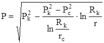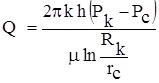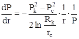 Интегрируя снова дифференциальное уравнение от давления на забое, но теперь до давления на контуре питания (Р = Рк, r = Rк) и пренебрегая 1/Rк по сравнению с 1/rс, получим уравнение притока газа к скважине