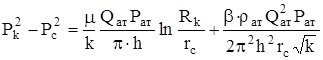 Тогда интеграл легко вычисляется и объемный дебит, приведенный к атмосферному давлению принимает вид:
