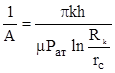 Первая зона имеет радиус R1 = (2-3)rс. Здесь имеет место нарушение закона Дарси из-за больших скоростей фильтрации вблизи перфорированных отверстий и проявляется несовершенство скважин по характеру вскрытия. Вторая область представляет кольцевое пространство (R1<r<R2), где R2» h. Здесь также имеет место нарушение закона Дарси, проявляется несовершенство скважины по степени вскрытия и применим двухчленный закон фильтрации. В третьей зоне R2<r<Rк – имеет место плоскорадиальный поток, подчиняющийся закону Дарси. Для этой области можно записать: