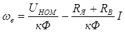Применительно к двигателю последовательного возбуждения при условии, что напряжение на зажимах двигателя равно номинальному, то есть U=UНОМ, и в цепи якоря отсутствует добавочное сопротивление (RДОБ=0), это уравнение примет следующий вид:
