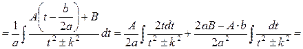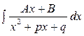План. 36. Інтегрування виразів, що містять квадратний тричлен (**). 37. Інтегрування раціональних функцій (**). 15.1. Інтегрування виразів, що містять квадратний тричлен. 1. Розглянемо інтегрування інтеграла вигляду: Даний інтеграл шляхом виділення повного квадрата у знаменнику можна звести до знаходження інтегралів більш простого виду: