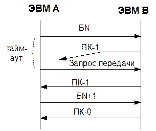 Одним из подходов к решению этой проблемы является нумерация квитанций. Блоки и квитанции можно нумеровать так, чтобы конкретная относится к конкретному блоку. Блоки и квитанции нумеруются в соответствии с протоколами HDLC и SDLC, и получатель ожидает приема входящих блоков в правильной последовательности. Когда обнаруживается пропуск в последовательности номеров, как в случае приема блока N+1, получатель инициирует действия по восстановлению ситуации. В начале ситуация казалась сложной, но было найдено простое решение – использование неодинаковых квитанций для следующих друг за другом блоков. Вместо одной ПК-0 используются символы АР-0; а для передачи ПК-1 – АР-1. Первый полученный блок квитируется ПК-1, а второй ПК-0. Вслед за этим посылается чередующиеся квитанции.