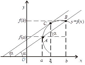 Теорема 3 (Теорема Лагранжа). Якщо функція f (х): 1) неперервна на відрізку [ a; b ]; 2) диференційовна на інтервалі (а; b), то на інтервалі знайдеться хоча б одна точка