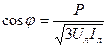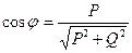Если в трехфазной симметричной цепи измерены активная и реактивная мощность, то коэффициент мощности можно определить по формуле