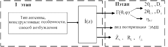 На первом этапе по известному типу антенны, ее геометрическим параметрам и способу возбуждения определяют распределение тока по антенне. На втором – рассчитывают радиотехнические характеристики и параметры роля излучения по известному распределению тока. Поле, излученное идеальным проводником, должно удовлетворять уравнениям Максвелла: