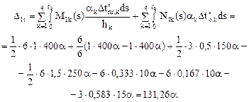 Ординаты эпюры 5. Вычисление коэффициентов разрешающего уравнения метода сил d11Х1 + D1t = 0. (17.1,а) Как и при силовом воздействии, в рамных системах коэффициент d11 вычисляется без учёта влияния на величину искомого перемещения деформаций сдвига и растяжения–сжатия.