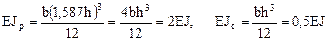 Размеры прямоугольных поперечных сечений рамы заданы так, что сохраняется соотношение изгибных жесткостей поперечных сечений ригелей и стоек, принятое для расчёта этой же рамы, в матричной форме на силовое воздействие в п. 16.8 шестнадцатой лекции, а именно: EJp: EJc = 2: 0,5. Приняв EJp = 2 EJ, EJс = 0,5 EJ, получим численное значение жесткостного параметра EJ: