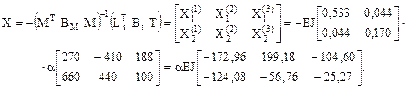 5. Определение элементов матрицы неизвестных метода сил. X = –d-1Dc = –(MT BM M)-1 (Rc E D(c)) =