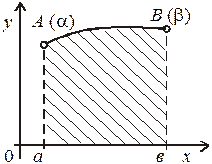 Дійсно, нехай рівняння визначають деяку у = f (x) на відрізку [ a; b ] і отже, площа криволінійної трапеції може бути обчислена за формулою