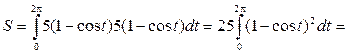 Приклад: Обчислити площу фігури, що обмежена віссю ОХ і однієї аркою циклоїди х = 5 (t – sint), y = 5 (1 – сost). Проводимо обчислення за відповідною формулою:
