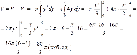 Аналогічно, об’єм тіла V утвореного обертанням навколо осі Оу фігури, обмеженої лініями x=0,
