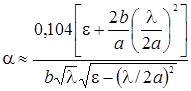 Коефіцієнт загасання хвилі в прямокутному хвилеводі розраховується за формулою: