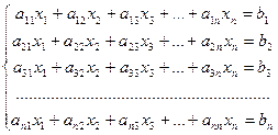 Розглянемо систему рівнянь, яка має п – рядків і п – невідомих: