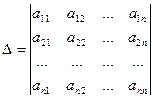 Така система має числову характеристику, яка називається визначником (або детермінантом: det): . Даний визначник має порядок п.