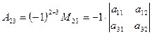 Мінором визначника D порядку п називається визначник (п-1) порядку, який отримуємо в результаті викреслювання з визначника D і – того рядка і к – того стовпця. Позначають .