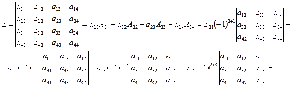 Розкладання визначника 4 – го порядку за елементами 2 – го рядка: