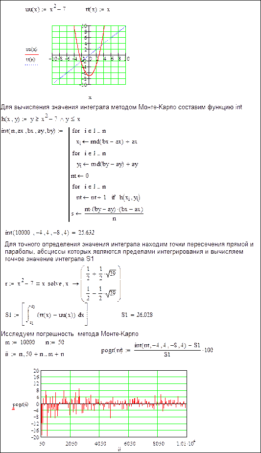 Пример. Определение значения интеграла методом Монте-Карло. Идея метода. Пусть необходимо определить площадь Рассчитать площадь фигуры, ограниченной параболой и прямой: