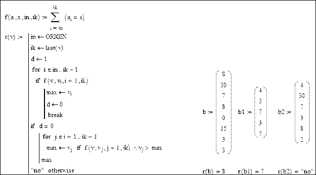 Пример. Найти максимальное из чисел, встречающихся в заданном векторе более одного раза.
