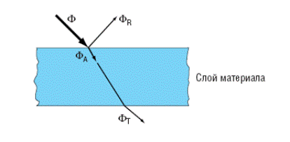 Рисунок 2.7 – Падающий поток излучения разделяется слоем материала на составляющие ΦR, ΦА и ΦТ