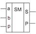 Повний однорозрядний двійковий суматор. Повний однорозрядний двійковий суматор (рис. 4) має три входи: a, b для двох доданків і p для переносу з попереднього (молодшого) розряду і два виходи: S – сума, P – переніс у наступний (старший) розряд. Позначають повний двійковий суматор буквами SM. Його роботу відображає таблиця істинності (табл. 3).