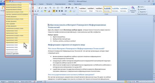 1. Щелкните по стрелке кнопки Отменить (см. рис. 3.23).