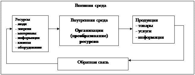 Организация – это группа людей, деятельность которых сознательно координируется для достижения значимой для всех членов группы общей цели или целей. Объединение людей может считаться организацией при наличии следующих признаков: - не менее двух людей, объединенных в группу и считающих себя частью этой группы; - одной или нескольких целей, которые принимаются членами группы в качестве общих; - членов группы, которые сознательно трудятся вместе, чтобы достичь значимой для всех членов группы одной или нескольких целей. Организация – это система, представляющая собой некую целостность, состоящую из взаимосвязанных и взаимозависимых частей, каждая из которых вносит свой вклад в характеристики целого. Организация как открытая система