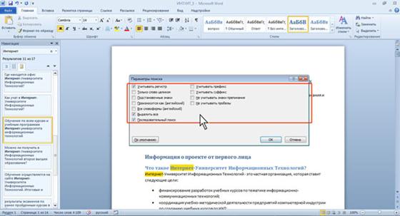Увеличить изображение Рис. 5.16. Настройка параметров поиска текста в документе 2. Установите нужные параметры в окне Параметры поиска (рис. 5.17).