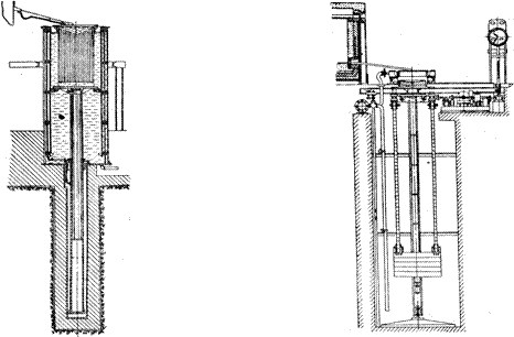 На рис.6.6. показан эскиз машины с гидравлическим приводом. В зависимости от качества изготовления регулятора скорости, достигаемая степень постоянства скорости на таких машинах различна. Колебания скорости в процессе литья (в связи с изменением веса отливаемого слитка) на них больше, чем на машинах с механическим приводом. Эти колебания для некоторых сплавов могут превышать допуски на скорость, установленные технологией, и вызывать увеличение брака по трещинам. Указанное обстоятельство, равно как и трудности, связанные с сооружением гидравлических машин для слитков большой длины, привели к тому, что в последние годы из машин с подъемным столом сооружают только машины с канатным или цепным приводом (рис.6.7.).