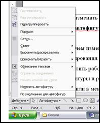 Можно изменить размер и другие атрибуты вставленной фигуры, например, цвет линий и фон. Команда По умолчанию для автофигур в меню Действия на панели инструментов Рисование позволяет вернуть фигуре исходные установки.
