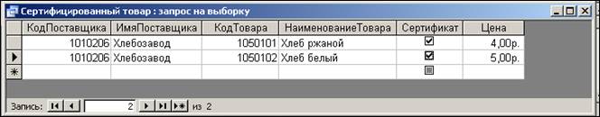 Рисунок 3 – Выполненный запрос 4. Сохраните запрос под именем СЕРТИФИЦИРОВАННЫЙ ТОВАР и закройте запрос.