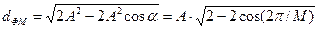 При ФМ мінімальна відстань між точками визначається, як довжина хорди при центральному куті α = 2π/M та радіусі кола r = А: