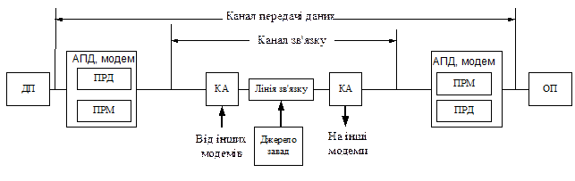 Рис. 1. Узагальнена структурна схема каналу передачі даних Лекція № 5.7 − “ Керування потоком інформаційних об’єктів. Комутація в мережах ”. В лекції будуть розглянуті наступні учбові питання: Вступ. 2 1 Комутація в мережах. 3 2 Комутація каналів. 7 3 Комутація та ущільнення каналів на основі мультиплексування. 10 3.1 Комутація каналів на основі частотного мультиплексування. 10 3.2 Комутація каналів на основі розподілу часу. 12