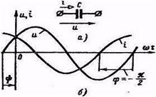 Пусть напряжение на емкости С (рисунок 5.5,а) синусоидально: