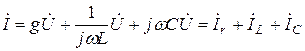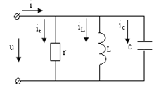 Если к зажимам электрической цепи, состоящей из параллельно соединенных элементов r, L и С (рисунок 6.6), приложено синусоидальное напряжение , то синусоидальный ток, проходящий через эту цепь, равен.