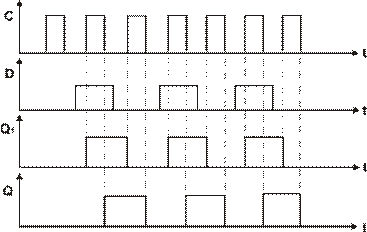 Из временной диаграммы следует, что двухступенчатый D–триггер может задерживать действие информационного сигнала максимально на целый период следования синхронных импульсов С.