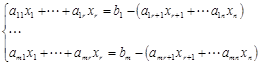 Следовательно, столбец свободных членов линейно зависит от столбцов матрицы коэффициентов, поэтом столбцы расширенной матрицы содержат тоже количество независимых столбцов, что и матрица коэффициентов, тогда добавление линейно зависимого столбца не изменит ранг матрицы. Следовательно, по теореме о ранге матрицы, ранг матрицы коэффициентов равен рангу расширенной матрицы. Достаточное условие: Применим правило Крамара к произвольной системе. Назовём базисными те переменные, которые входят в базисный минор, а все остальные – свободными. Тогда по теореме о базисном миноре нижние строки расширенной матрицы являются линейно зависимыми от первых строк, то есть могут быть представлены, как их линейные комбинации, следовательно, они являются лишними и могут быть отброшены. В результате остаётся система с r уравнениями и тем же количеством неизвестных, где r – ранг системы, или ранг базисного минора. Перенесём свободные переменные направо, тогда получится система следующего вида: Частный случай, когда ранг системы равен рангу матрицы коэффициентов, тогда все переменные являются базисными, значит свободных нет, а система имеет единственное решение. Система линейных алгебраических уравнений имеет одно единственное решение, если она совместна, и её ранг равен количеству переменных. Вопрос № 12: Метод Гаусса последовательного исключения неизвестных: 1. Метод Гаусса последовательного исключения неизвестных. а) Матричная форма записи. б) Прямой и обратный ход. Метод последовательного исключения неизвестных заключается в решении системы алгебраических уравнений с одновременным исследованием её на совместность. Метод реализуется в два этапа: Прямой ход метода: Прямой ход метода Гаусса заключается в преобразовании расширенной матрицы коэффициентов системы к ступенчатому виду с помощью элементарных преобразований, то есть как при нахождении ранга матрицы и базисного минора, но только со строками матрицы. При этом само преобразование к ступенчатому виду с помощью нескольких шагов, на каждом из которых исключается одна переменная, то есть обнуляется нижний элемент одного из столбцов. В результате выполнения нескольких шагов матрица оказывается приведённой к ступенчатому виду. На этом этапе можно определить ранг матрицы и системы. Если ранг расширенной матрицы равен рангу матрицы коэффициентов, то система считается совместной, в противном случае система не совместна. Если количество уравнений равно количеству неизвестных, то система имеет единственное решение, если ранг системы меньше числа неизвестных, то количество решений бесконечно. Обратный ход метода: Если решение единственно: Вопрос № 13: Однородная система линейных алгебраических уравнений: 1. Однородная система линейных алгебраических уравнений. а) Свойства. 2. Теорема о существовании линейно независимых решений. а) Доказательство. Система называется однородной, если все свободные члены равны нулю. Однородная система всегда совместна. Существует только одно решение. Теорема о существовании не нулевых решений однородной системы: Однородная система имеет не нулевые решения тогда, когда ранг матрицы коэффициентов меньше числа неизвестных. Доказательство: