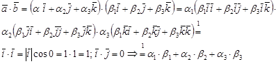 Базис: Базисом на плоскости, или в пространстве называется максимальная система из линейно независимых векторов. 1. Базис на прямой является единственным вектором, параллельным данной прямой. 2. Базис на плоскости – это любая пара из не коллинеарных векторов, параллельных этой плоскости. 3. Базис в пространстве – это любые три не комплонарных вектора. Разложение вектора по базису называется представление его в виде линейной комбинации векторов базиса. Теорема: Для заданного вектора а и выбранного базиса разложение, по базису является единственным. Координаты вектора в базисе: Координатами любого вектора в пространстве (в базисе) называются коэффициенты его разложения базису. Свойства: При сложении векторов одного и того же базиса, складываются соответствующие координаты. При умножении вектора на число, умножаются все координаты этого вектора число. Системы координат на плоскости и в пространстве: Аффинная система координат: Аффинной системой координат называется совокупность из точки – начала координат, и базиса. Не аффинная система координат: Не аффинной системой координат является полярная (цилиндрическая, сферическая) система координат. Декартова система координат: Частным случаем аффинной системы координат является прямоугольная Декартова система координат. Вопрос № 18: Скалярное произведение векторов: 1. Скалярное произведение векторов. а) Свойства. б) Применение. в) Выражение через координаты сомножителей. Проекция вектора на вектор: