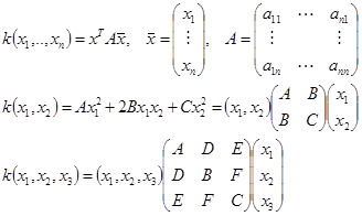 С помощью поворота можно исключить смежные произведения переменных, каждая их которых определяет свою поверхность (эллипсоид, гиперболоид, параболоид, конус, цилиндроид). Исследование функции поверхности проводится при помощи канонического уравнения с помощью метода сечений. Если все переменные в уравнении есть и все входят квадратично, то: 1. Если все слагаемые положительны, то 1) 2) 3) 2. 1) 2) 3) 3. 1)