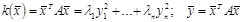 Для этого воспользуемся свойством собственных векторов и собственных значений матрицы А. Так как матрица А симметрична, все её собственные значения, среди которых могут быть кратные, являются действительными числами. Каждому Так как все столбцы линейно независимой матрицы Т можно сделать ортогональными с помощью процедуры Шмидта, и нормированными, то: В результате матрицу квадратичной формы можно представить в виде: Замена Любую квадратичную форму можно преобразовать с помощью линейного ортогонального преобразования в новые переменные, при этом старые и новые переменные будут связаны Вопрос № 29: Знакоопределённые квадратичные формы многих переменных: 1. Знакоопределённые квадратичные формы многих переменных. а) Критерии знакоопределенности. 1) Собственных значений. 2) Сильвестра. Понятие знакоопределённости квадратичной формы используется для: 1. Определение типа кривой или поверхности второго порядка по её общему уравнению. 2. При исследовании функции многих переменных на экстремум, так как достаточным условием является знакоопределенность второго дифференциала. Квадратичная форма называется положительно определённой, если она при любых ненулевых значениях своих аргументов принимает только положительные значения. Если квадратичная форма меньше, либо равна нулю, то она отрицательно полу определена, иначе не определена. Критерии знакоопределённости квадратичной формы: Критерий собственных значений матрицы: Приведём квадратичную форму к каноническому виду: 1. Если все собственные значения больше нуля, то квадратичная форма тоже больше нуля. 2. Если все собственные значения меньше нуля, то квадратичная форма тоже меньше нуля. 3. Если все собственные значения больше, либо равны нулю, то квадратичная форма тоже меньше нуля. 4. Если некоторые собственные значения равны нулю, а остальные меньше, то квадратичная форма отрицательно полу определена. 5. Если некоторые собственные значения больше нуля, а остальные меньше, то квадратичная форма может иметь любой знак. Знакоопределённость квадратичной формы совпадает со знаками собственных значений её матрицы, то есть критерий собственных значений является полным, но трудоёмким, так как для вычисления собственных значений необходимо решить характеристическое уравнение матрицы. Критерий Сильвестра: Критерий Сильвестра позволяет выделить положительную и отрицательную знакоопределённость квадратичной формы с помощью вычисления нескольких определителей, являющихся угловыми минорами квадратичной формы. После вычисления миноров суждение о знакоопределенности квадратичной формы выносится по следующему правилу: 1. Если все угловые миноры положительны, то квадратичная форма положительно определена. 2. Если угловые миноры чередуются знаком, начиная с минуса, то есть: 3. Если идёт чередование знаков, начиная с плюса, или любое другое сочетание знаков, или существуют миноры, равные нулю (последний минор не равен нулю), то форма знака неопределенна. 4. Если последний минор равен нулю, в этом случае критерий Сильвестра не различает знакоопределённости формы, и необходимо использовать другой критерий. Это свидетельствует о грубости метода. Для заметок [1] Для вычисления разности необходимо умножить вычитаемое на минус единицу и сложить получившиеся компоненты. [2] Порядки мат