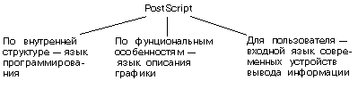 PostScript, как представлено на следующей схеме, можно рассматривать с нескольких точек зрения: