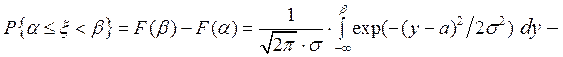 Пусть случайная величина x имеет нормальное распределение. Вычислим вероятность события { a < x < b }. Из свойств функции распределения (стр.53) имеем: