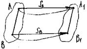Матеріальне тіло вважаємо системою матеріальних точок. Всі залежності кінематики мають сенс тільки для абсолютно твердого тіла. Поступальним називають такий рух твердого тіла при якому довільна пряма обрана в цьому тілі лишається паралельною своєму початковому розташуванню (положенню). Для такого виду руху всі точки тіла описують однакові за формою та розмірами траєкторії. При накладанні ці траекторії співпадають одна з одною => що за однаковий проміжок часу всі точки проходять однаковий за довжиною та напрямом шлях.